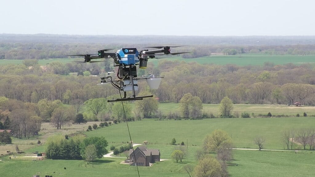 One common application is tethered drone control. In this model, a stationary drone is connected to a ground-based controller via a reusable fiber drum. This setup allows the drone to remain airborne for extended periods. The drone effectively acts as an aerial relay, raising antennas to improve communication in difficult terrain. Such a technique is already being explored by mobile carriers like AT&T (Fig. 1) for emergency response scenarios.