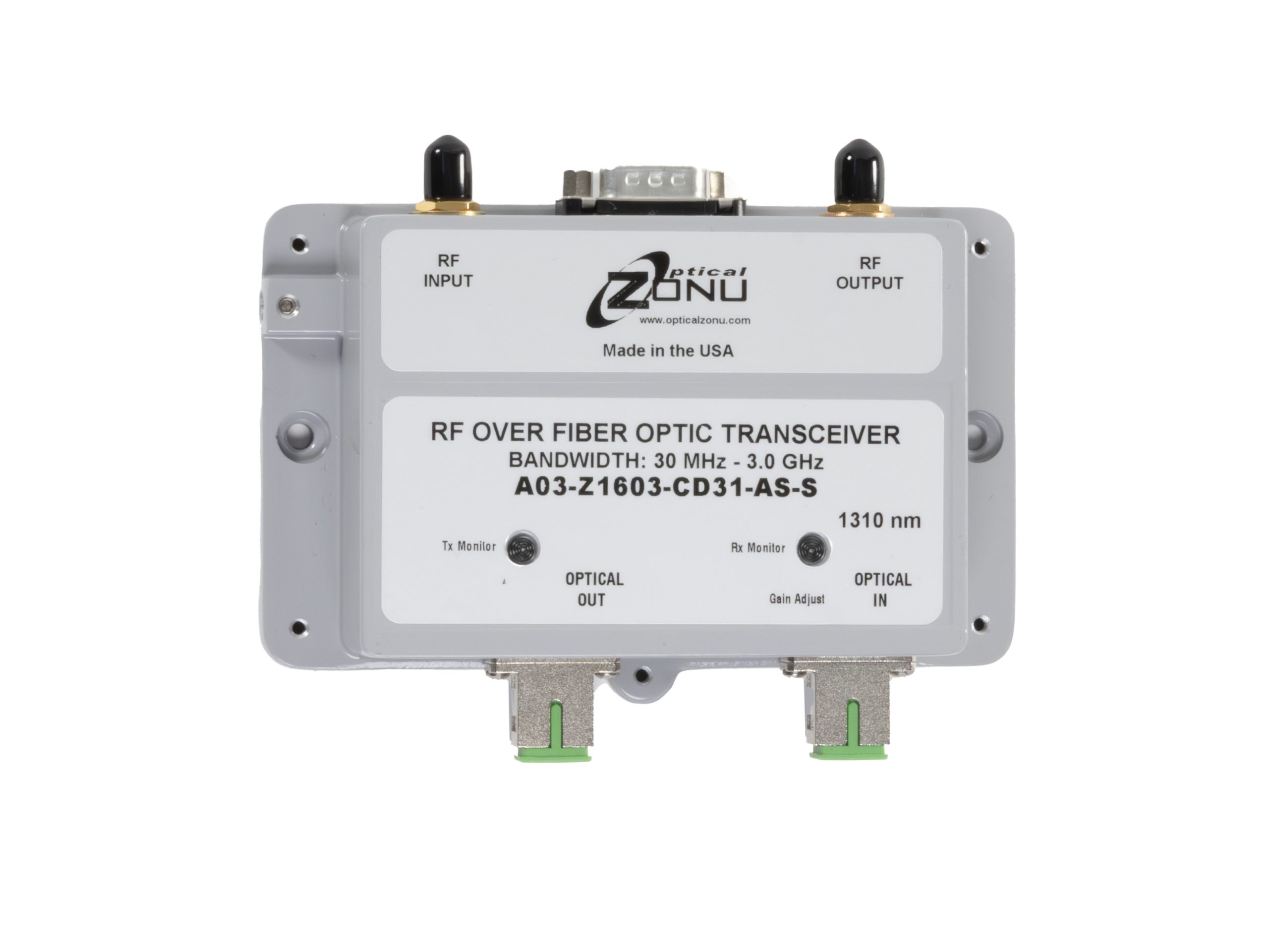 Transmitters feature linear uncooled isolated DFB laser diodes. CWDM wavelengths are available. Average Automatic Power Control (AAPC) provides closed loop control of the transmitter optical output power over the full operating temperature range. Receivers feature high performance InGaAs photodiodes. The standard transport RF frequency band is 30 – 3,000 MHz. Options exist for extending the frequency range to 1 MHz on the lower end and 6 GHz on the higher end. The RF interface is 50Ω SMA. SC/APC optical fiber pigtails are standard to maintain low optical reflections throughout the fiber plant. Contact Optical Zonu for other options. Standard transport is over 9/125 μm single mode fiber, however Multimode fiber transport is also an option (contact Optical Zonu for details).